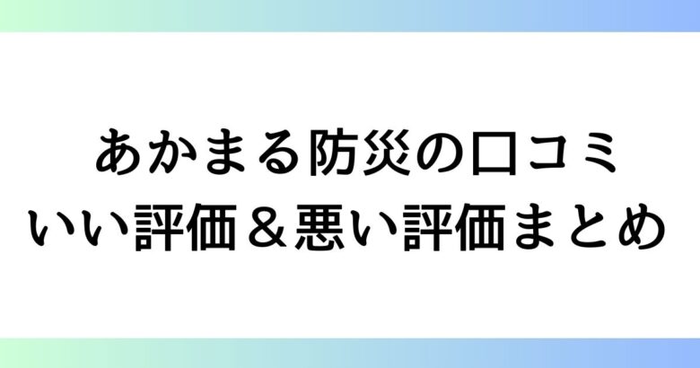 あかまる防災口コミまとめ!良い評判と悪い評価を初心者にもわかりやすく