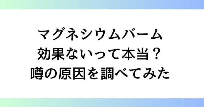 「マグネシウムバームの効果ないって本当?」 マグネシウムバームって効果ないの? 肩こりや不眠に効くと聞いたけど変化ない と感じていませんか。 SNSや口コミで話題のマグネシウムバームですが、実際には効果を感じる人と感じない人がいます。 この記事... -