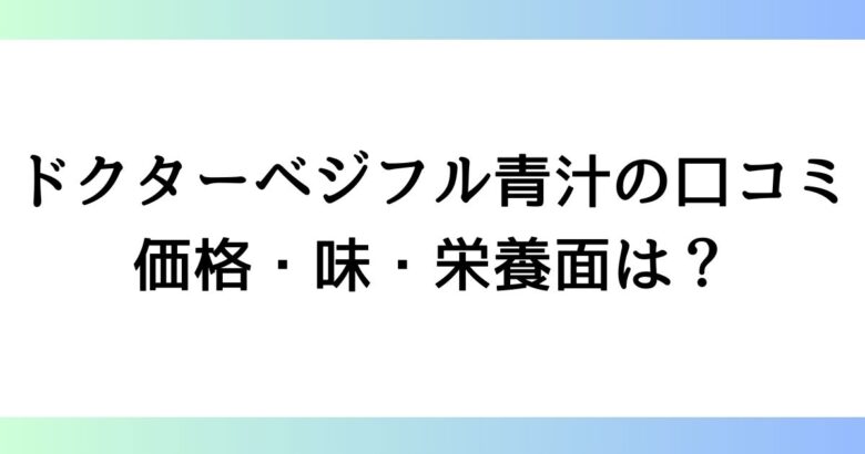 ドクターベジフル青汁って実際どうなの?いいの? と気になっている方は多いですよね。 ドクターベジフル青汁の口コミを見ると、飲みやすさや国産野菜への安心感を評価する声が多い一方、価格面を気にする意見も見られます。 口コミから味や効果メリット・... -