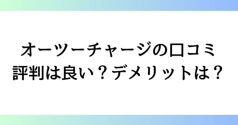 オーツーチャージの口コミは本当?評判とデメリットを徹底解説