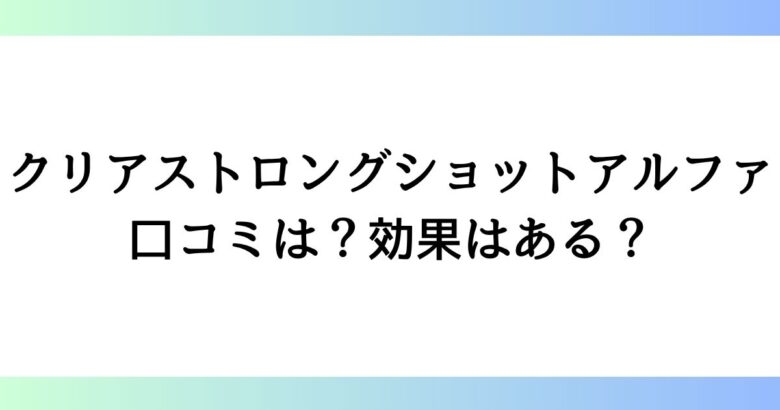 クリアストロングショットアルファの口コミ検証!失敗しない選び方と注意点