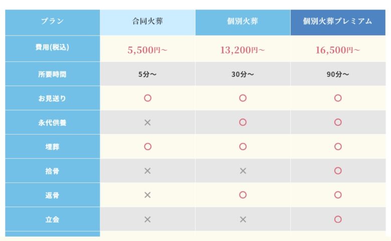 骨壺のサイズ変更や供養グッズなどは別料金になる場合があります。
